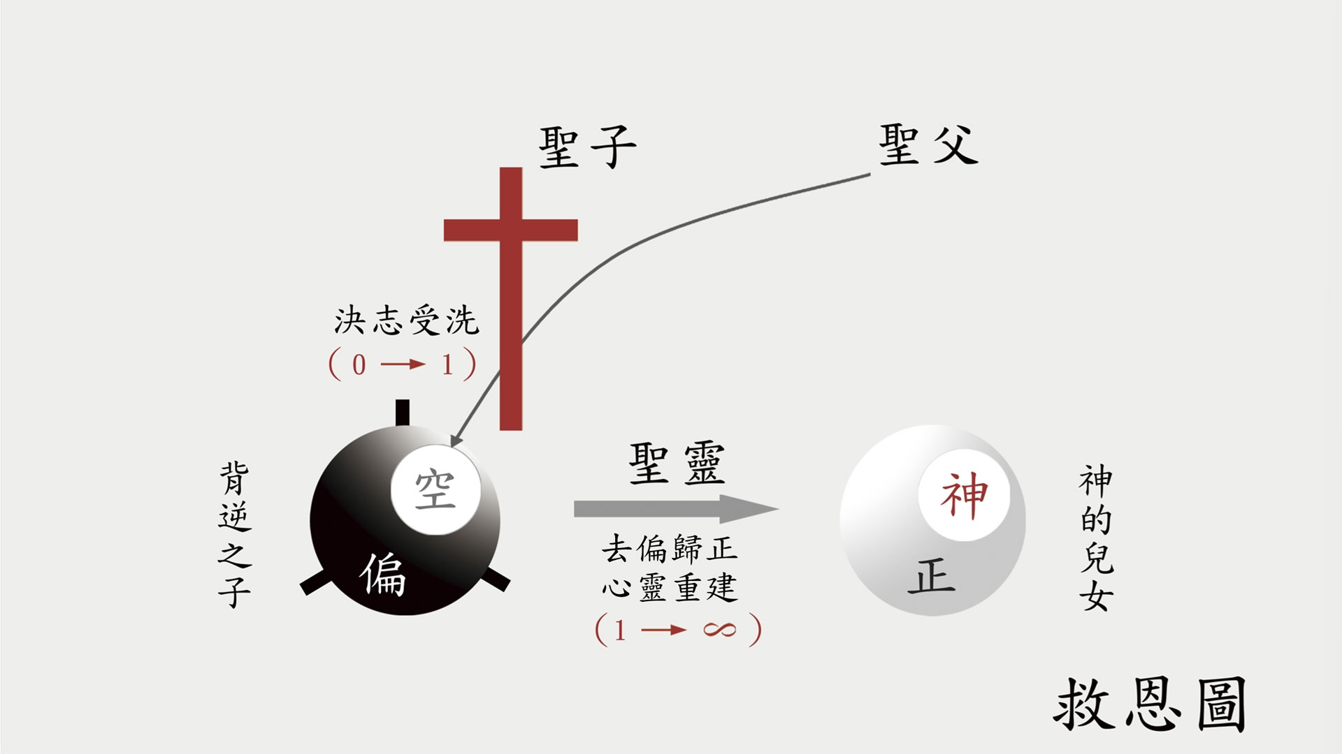- 第二圈是核心能力,就是悔改歸位靈洗,去偏歸正,與神和好,這是方法。